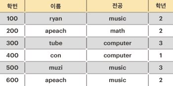 relation [["100","ryan","music","2"],["200","apeach","math","2"], ["300","tube","computer","3"],["400","con","computer","4"], ["500","muzi","music","3"],["600","apeach","music","2"]]